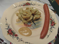 I know, it sounds unusual, but the only odd thing is the combination of two such different food choices: mine and Hans's. Wieners and potato salad are common on Christmas eve in Germany, especially in northern and eastern Germany. It is a simple meal, easy for mothers to put on the table and for children who are almost too excited to eat. (Not common in Germany are Coquilles St. Jacques. I gave my recipe for these in my blog post of 2 January 2011.)